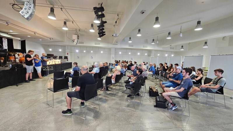 1st day of the Jazz Education Stage with the various registered instrumentalists, as well as the participation of the Cedros-UP Big Band from Mexico. In the program: Big Band Master Class: Joan Chamorro. Sax master class: Joel Frahm was to host it with Scott Hamilton, as planned in the program, but he hosted it alone because Scott replaced Gerry Lopez who was absent the next day.
